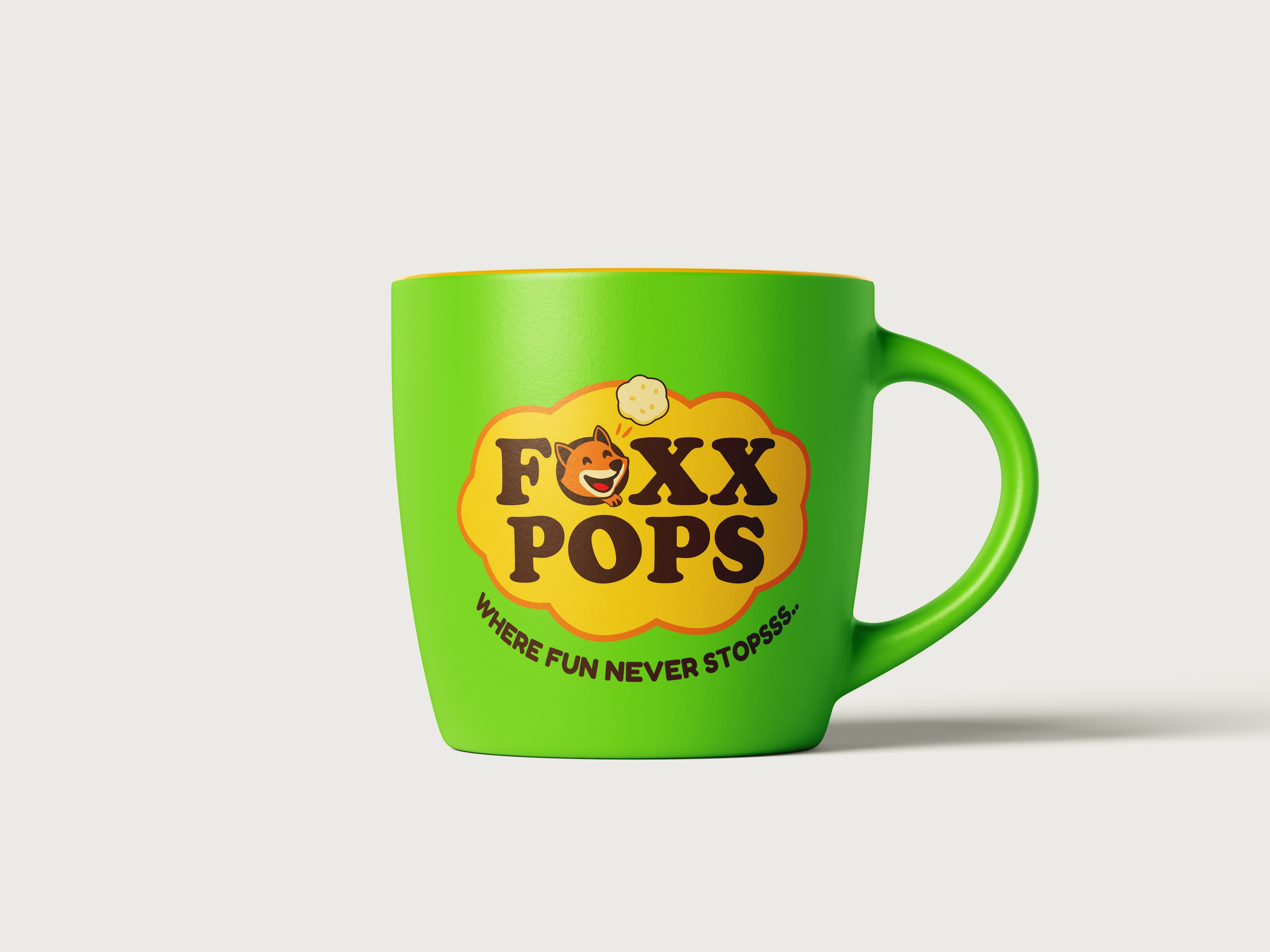 For Foxx Pops, a Makhana snacking brand, I designed the logo, branding, and packaging to capture a fun, family-friendly vibe. The identity features a cheerful fox mascot in playful typography, paired with a bright yellow-green palette for energy and joy. A soft cloud backdrop adds charm, while the tagline “WHERE FUN NEVER STOPSSS...” reflects the brand’s lively, youthful spirit.